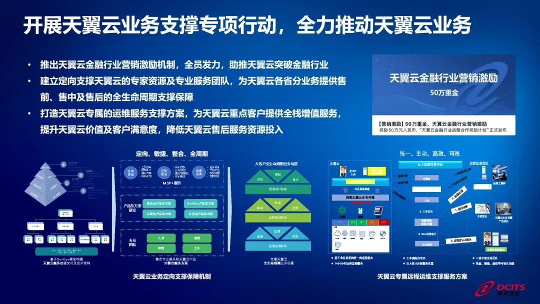 此外,神州信息还开展了天翼云业务支撑专项行动,建立了定向支撑天翼云的专家资源及专业服务团队,不仅为各省分业务提供了全生命周期的支撑保障,更为双方未来的合作奠定了坚实的基础。